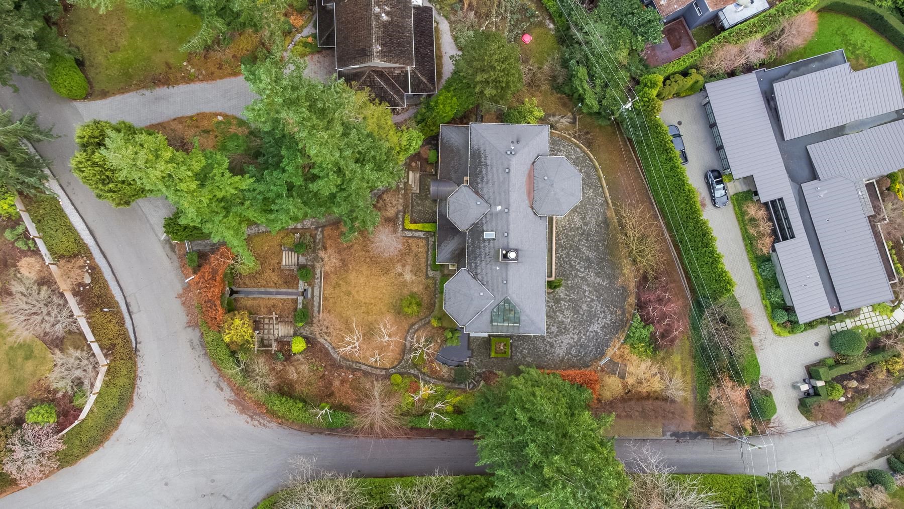 An estate-sized opportunity offering privacy, expansive grounds, and south-facing ocean views in a prime West Vancouver location. Set on a 19,602 sq.ft. lot, this custom-built 2005 Mediterranean-style residence combines concrete, steel, and wood construction with a dramatic glass atrium and three-level elevator access. The generous layout features six bedrooms, five bathrooms, a recreation room—perfect for customization or extended family living. Enjoy existing water features, open grounds with a flat lawn, and a private driveway leading to an oversized double attached garage. Steps to Larson Beach, Gleneagles Recreation Centre, schools, and golf. Amazing opportunity on a prime property, priced well below assessed value.